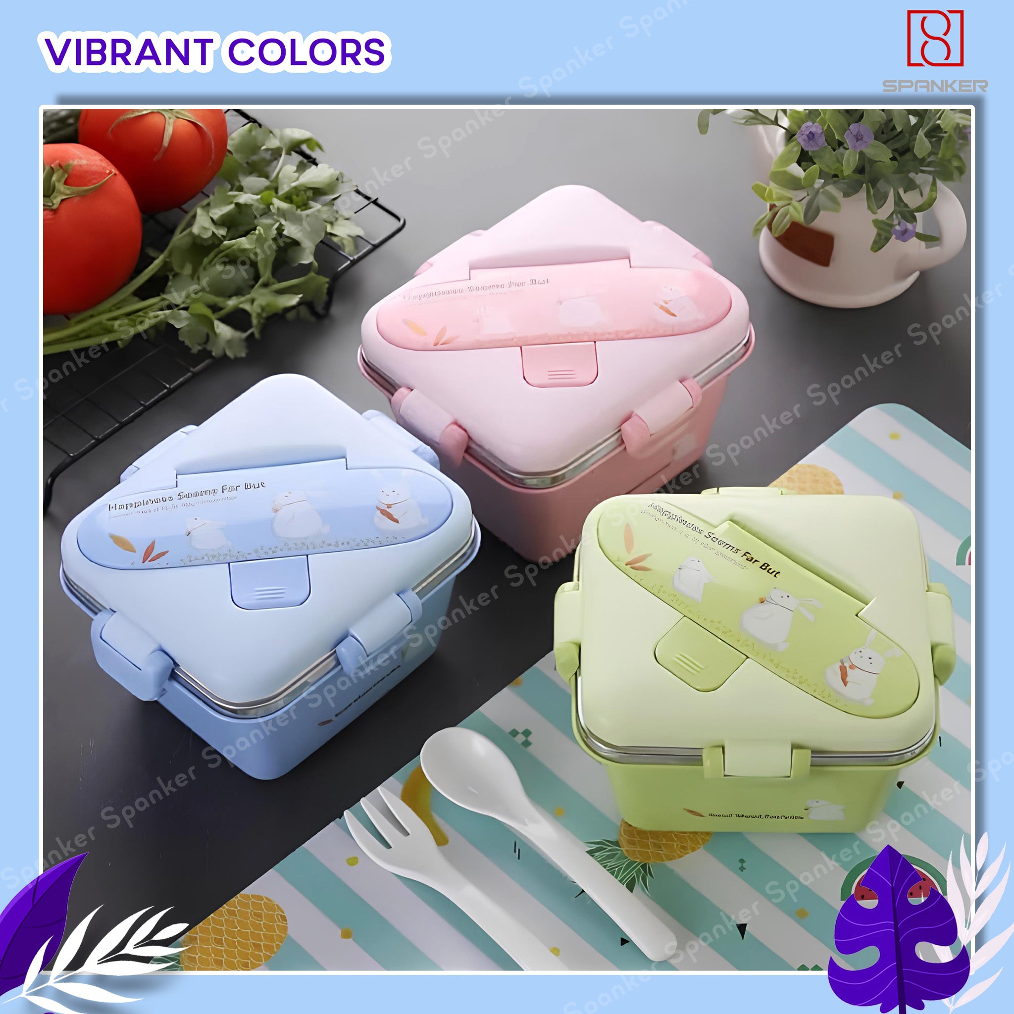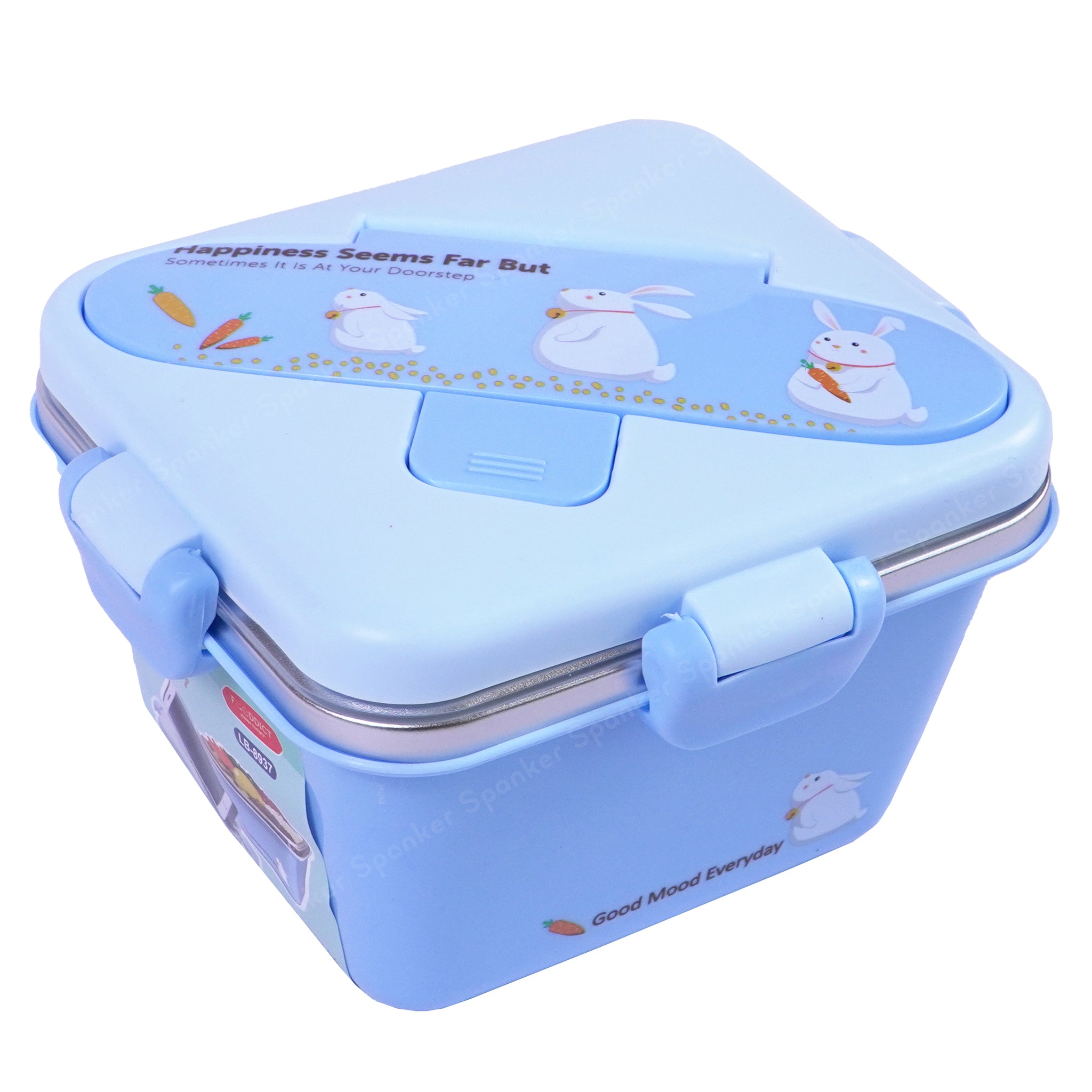 Spanker 600 ML Cartoon Design Portable Leak-Proof, BPA-Free Dishwasher Safe Stainless Steel Bento Box with Spoon & Fork for Toddlers Preschoolers - Blue