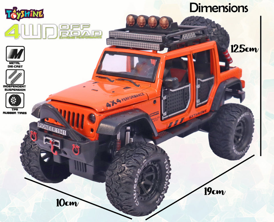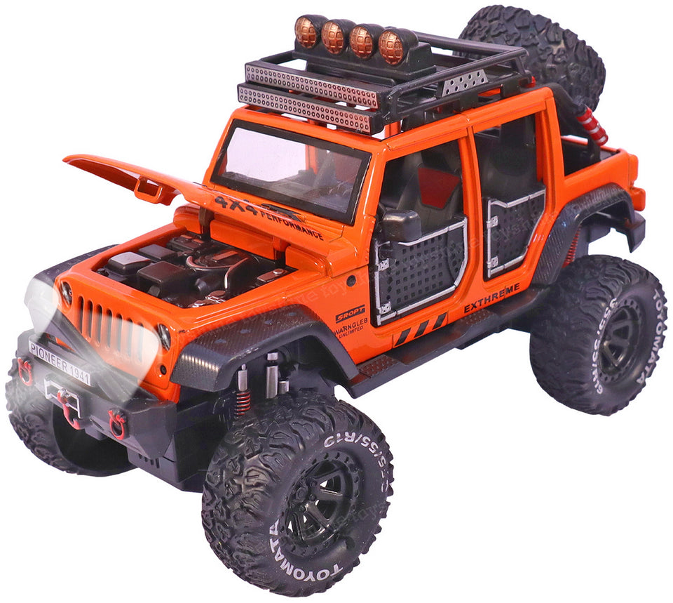 Toyshine 1:24 4WD Off Road Die Cast, Opening Doors, Vehicle Toy Car, Music and Lights - Orange