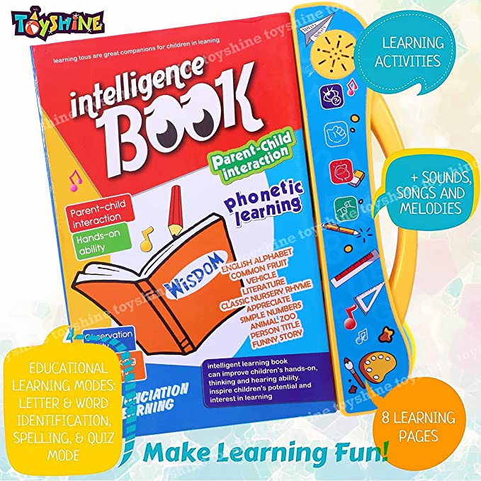 - COLORFUL AUDIO INTERACTIVE LEARNING BOOK: Toyshine Learning book has multiple modes to help children learn alphabets and spellings. Every page has button please press the switch first to start the page. As a child presses the image on the book, the sound of the alphabet, the word and spelling are played.